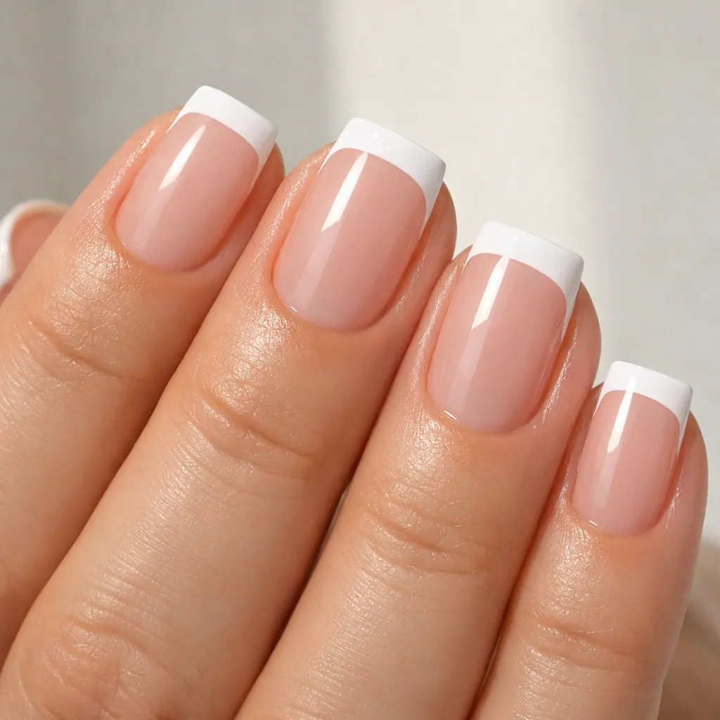Classic French tips but cut clean with a sharp square edge. Minimal yet elevated. Perfect for work or everyday wear.