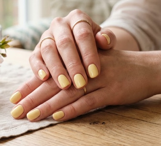 Buttercream yellow is a softer, more wearable version of bold yellow, making it a top choice for April 2026. This shade has a creamy, pale tone that feels warm and cheerful without being too loud. It’s perfect for those who want to experiment with color while keeping their look subtle and refined.