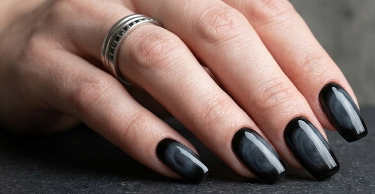 Black & Grey Smoky Aura Nails