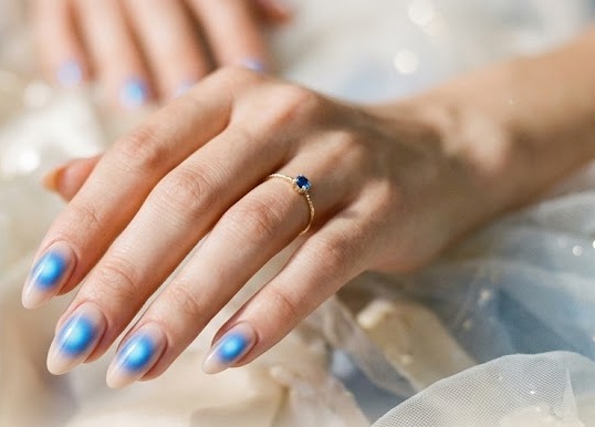 Blue aura nails are especially popular for summer because the soft glow resembles sunlight reflecting on water.