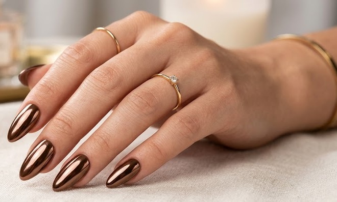 Brown Chrome Nails