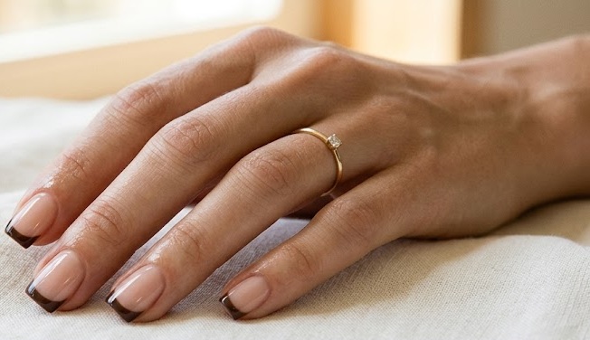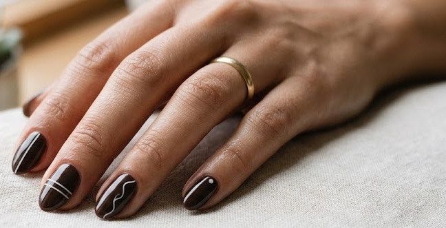 This style is perfect for both office wear and formal occasions because of its clean and sophisticated vibe. The richness of chocolate tones complements all skin tones, adding warmth to your hands. You can also pair it with gold rings for an even more elevated look. Despite its simplicity, it never feels boring and always looks effortlessly chic.