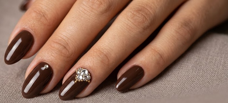 Brown Rhinestone Accent Nails