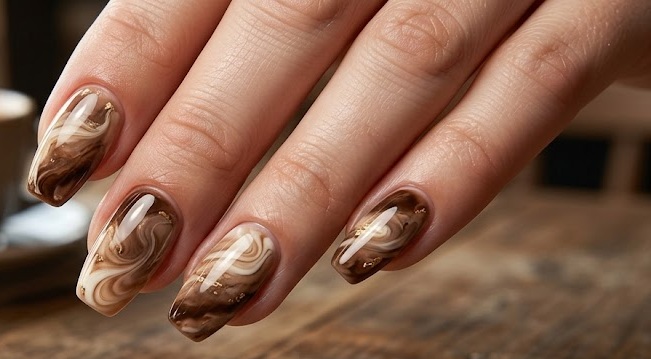 Coffee Marble Brown Nails