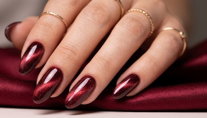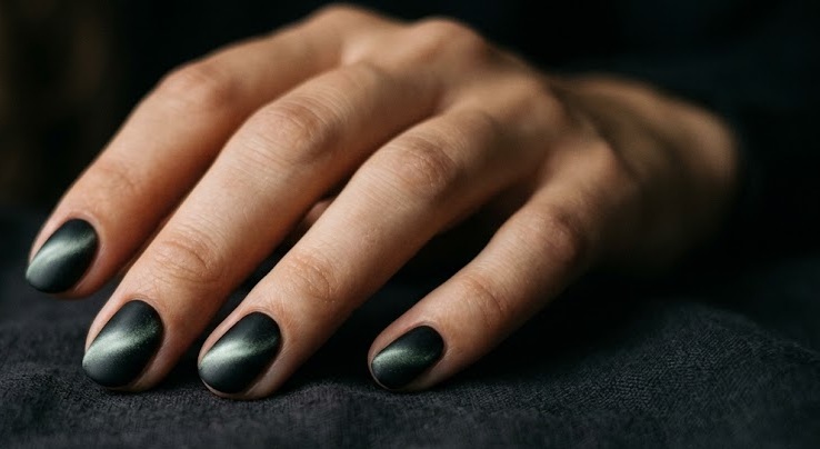 A modern twist on the trend, this look combines cat eye shimmer with a matte topcoat. The contrast between the soft matte surface and the glowing magnetic line creates a unique velvet-like texture. It’s edgy, subtle, and incredibly chic.