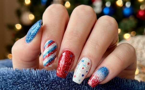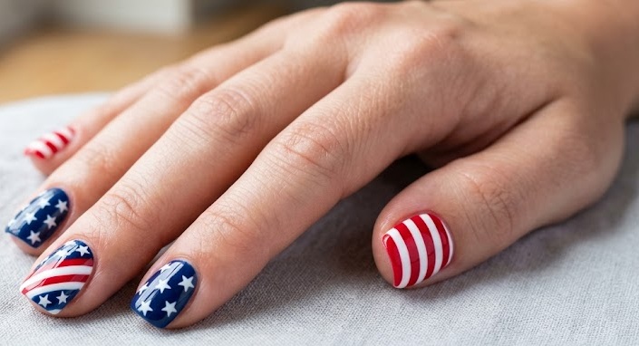 This manicure is ideal for parties, parades, and outdoor celebrations. You can also experiment with matte finishes for a modern twist. Overall, it’s a fun and energetic design that captures the excitement of the holiday.