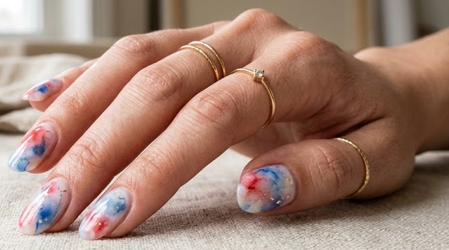 You can add glitter or tiny stars on top for extra detail without overwhelming the design. This manicure works well on both short and long nails, making it versatile for all styles. It’s ideal for summer outings, beach days, and casual celebrations. Overall, it offers a modern and artistic take on patriotic nail art.