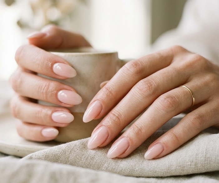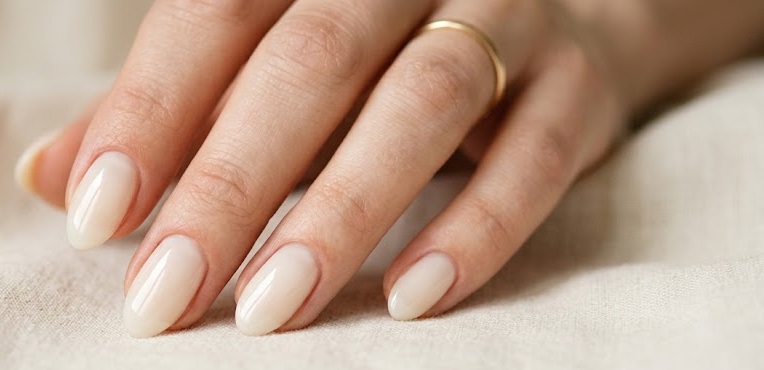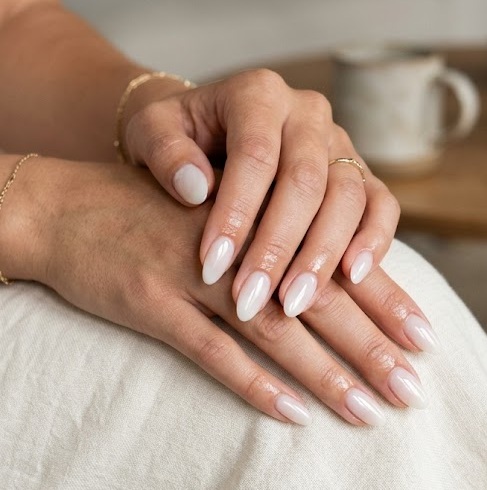 Almond shaped nails pair perfectly with milky polish because the elongated shape enhances the clean, natural look. The creamy sheer color highlights the graceful curve of the nail shape while keeping the manicure minimal.