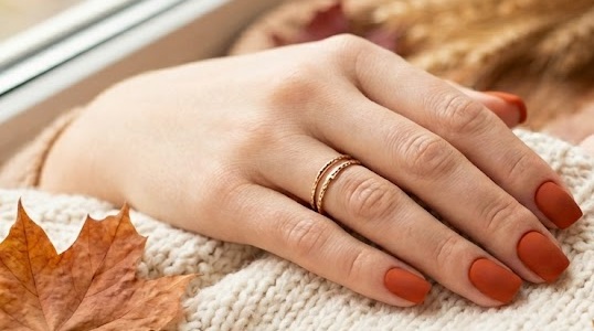 Burnt orange matte nails are perfect for autumn and give off a warm, sophisticated vibe. The muted tone combined with a matte finish creates a soft, velvety appearance that feels elegant and modern. This design pairs well with cozy outfits and neutral tones, making it a seasonal favorite. It’s simple yet classy, ideal for those who prefer understated beauty.