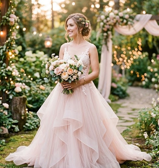 Romantic doesn’t always mean white. Colored wedding dresses like blush pink, champagne, or soft blue add a unique and dreamy twist. These hues enhance the softness of the gown while allowing brides to express individuality. Subtle color tones paired with lace or tulle create a truly enchanting bridal look.