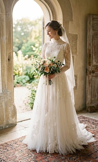 Long sleeve lace dresses bring vintage-inspired romance with a modern twist. These gowns often feature sheer lace sleeves, high necklines, and intricate patterns that evoke timeless elegance. Perfect for winter weddings or formal ceremonies, this style blends modesty with sophistication. Designers are reimagining lace with modern tailoring, making it both classic and contemporary.