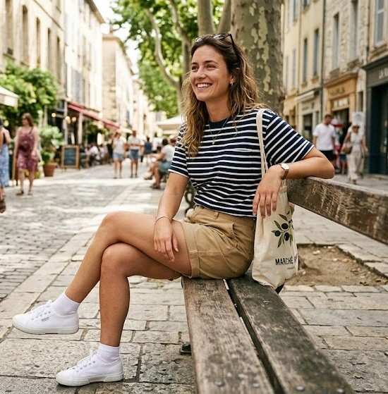 Nothing beats the simplicity of a casual shorts outfit for everyday wear. A striped cotton tee tucked into relaxed-fit shorts creates an effortlessly chic appearance. Pair it with white sneakers or slip-on flats for comfort and mobility. This look is perfect for running errands, casual walks, or relaxed weekends. The beauty lies in its simplicity, clean lines, breathable fabrics, and a laid-back vibe that still feels put together.